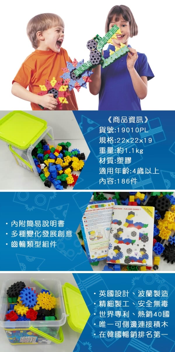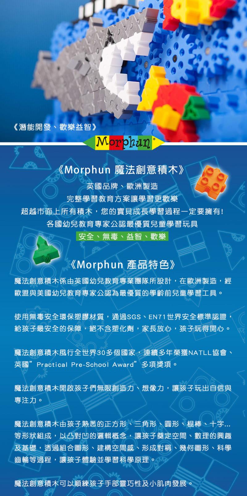 - 魔法創意積木由正方形、三角形、圓形、棍棒、十字等形狀組成,以凸對凹的邏輯概念,讓孩子奠定空間、數理的興趣及基礎,透過組合圖形、建構空間感、形成對稱、幾何圖形、科學齒輪的過程,讓孩子體驗並學習科學理論。