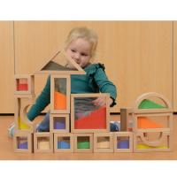 積木有6種不同的形狀(大小正方形、三角形、矩形、半圓和拱形),搭建過程中,可以引導幼兒完成對集合教育中求同、分類、配對以及幾何形體和顏色的認知,既是幼兒喜愛的玩具又是多功能的學具。