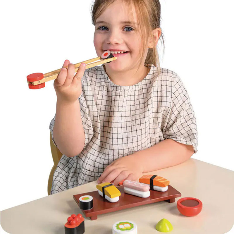 - 今天想吃什麼壽司呢?拿起壽司筷,開始練習使用筷子。7種不同口味的壽司,沾一下醬油和芥末,恩~美味しい!透過使用筷子夾取壽司的動作,訓練手部肌力、手指分化協調性和操控能力。