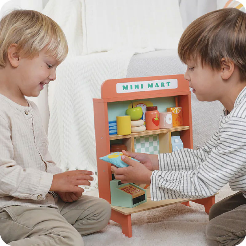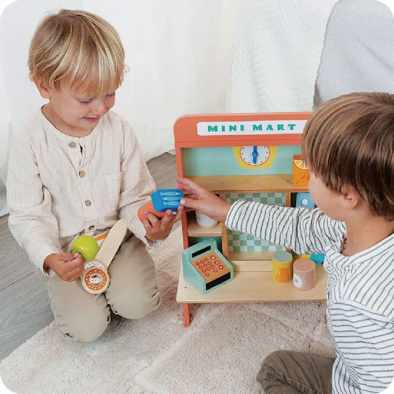 - 便利商店營業中!滴答滴答,時鐘已經10點10分,我們的迷你便利商店應有盡有:收銀機裡有3枚硬幣、果醬、果汁、咖啡、薯片、沙丁魚、衛生紙、貓糧、牛奶、蘋果、2個甜甜圈和2個法國麵包,請問今天需要什麼呢?