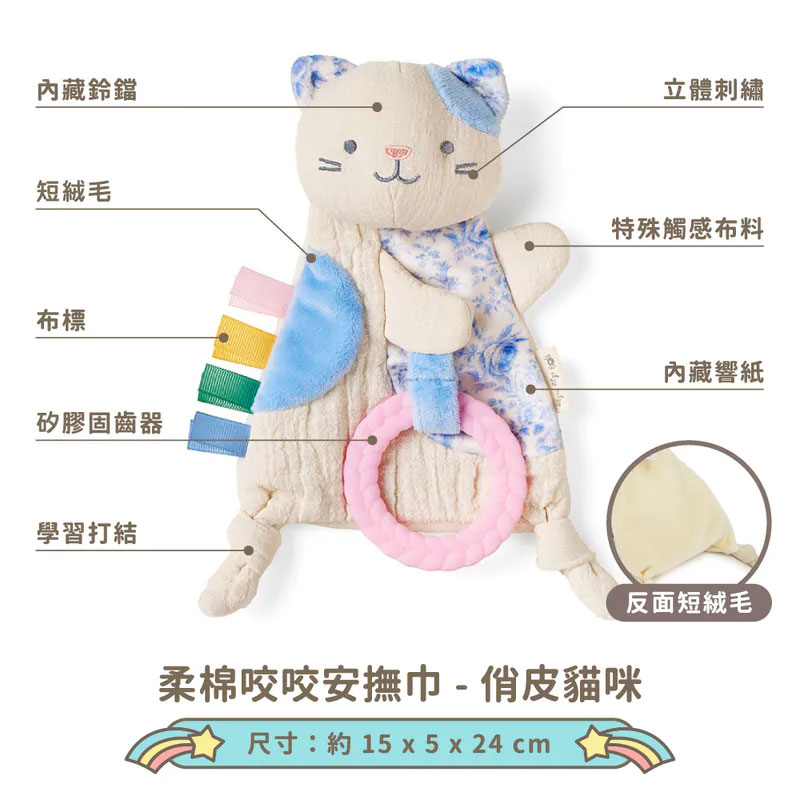 【美國 Itzy Ritzy】柔棉咬咬安撫巾-俏皮貓咪