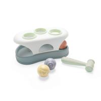 •運用槌子將小球逐一敲落,練習幼兒操作工具的技巧與手部力氣,並帶來視覺、聽覺與觸覺的多重感官回饋。