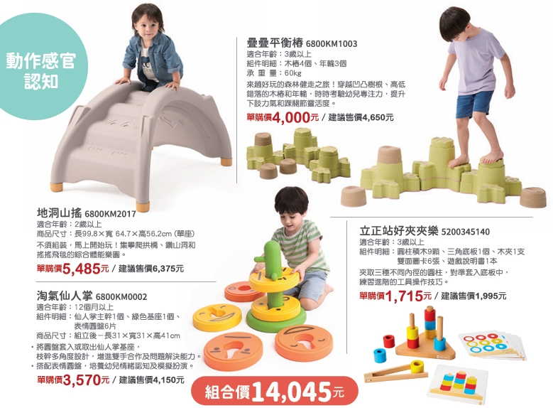 【童心園 春日號 - 動作感官認知】立正站好夾夾樂 + 淘氣仙人掌 + 疊疊平衡樁 + 地洞山搖
