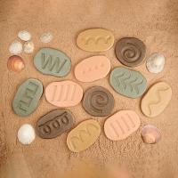 石心書寫練習 : 12種書寫感官石,幫助孩子認識文字的基礎線條,可使用畫筆、顏料、泥沙等多元材料進行書寫練習,並增強手部控制能力。