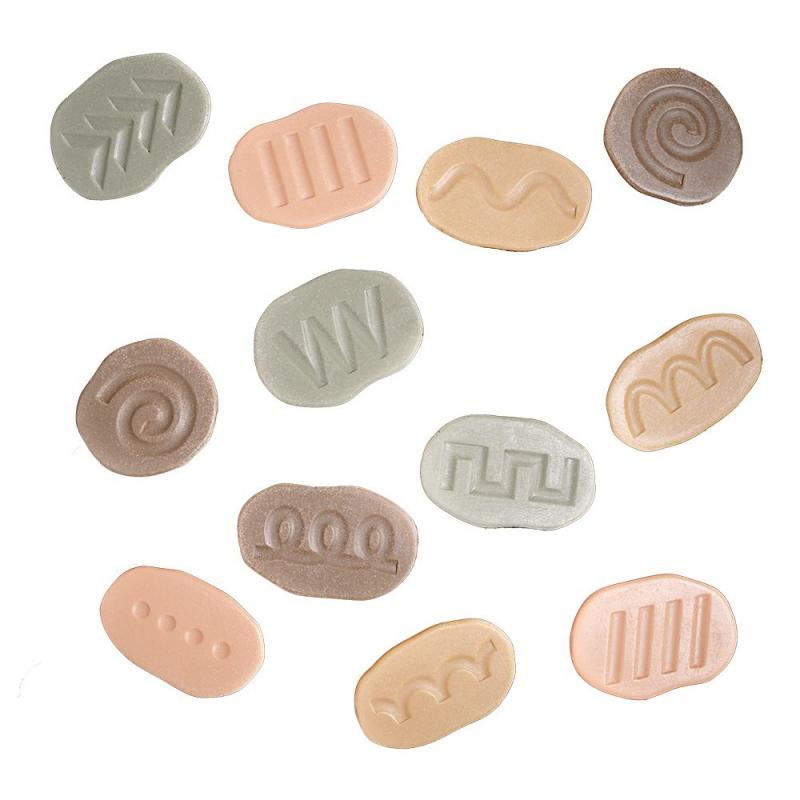 •12種感官石,幫助幼兒在學習正式書寫之前,認識點、直線、波浪、螺旋…等構成文字的基本線條圖案,並從中感受肌肉運動方向,增強手部控制力。