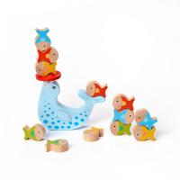 •將小魚依序堆疊在小小的紅色平台或海豹尾巴上,並取得兩端平衡。