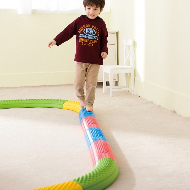 - 踩踏平衡觸覺板(綜合組) : 16片觸覺板可以組合可組合成圓形、S型、問號…等大型的路徑與建康步道。底部有止滑點,行走更安全。