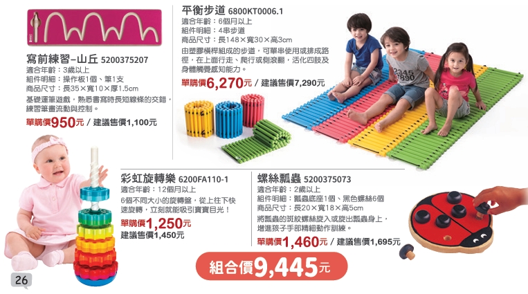 【童心園 春日號 - 動作感官認知】平衡步道 + 寫前練習 山丘 + 螺絲瓢蟲 + 彩虹旋轉樂