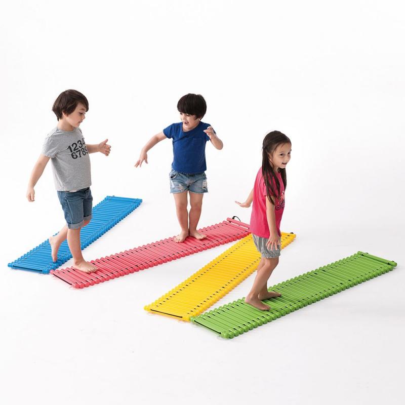 - 平衡步道 : 塑膠橫桿,提供孩子腳底觸覺感受。行走時橫桿微轉動,提升孩子平衡能力。