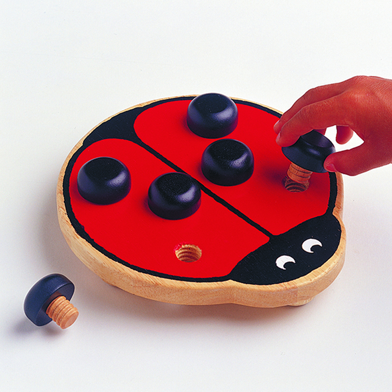 螺絲瓢蟲 : 黑色斑紋螺絲可旋出再旋至瓢蟲身上。增進孩子手部精細動作訓練、活化手部肌肉與椀關節。