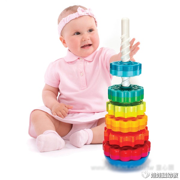 彩虹旋轉樂 : 色彩豐富的螺旋轉盤,馬上吸引小傢伙們的目光,讓孩子們樂不思蜀。螺旋桿的設計,讓轉盤從上自下快速旋轉,吸引寶貝目光。