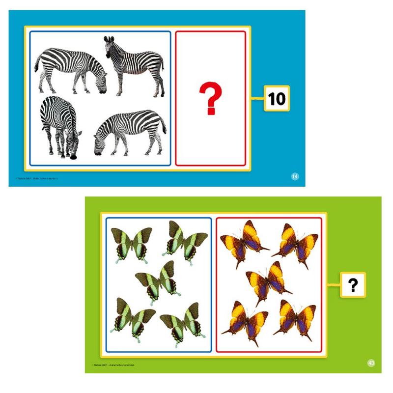 •一組共有48張題目卡,從數量對應到20以內之加減遊戲,有系統地引導孩子學習基礎數學運算概念。