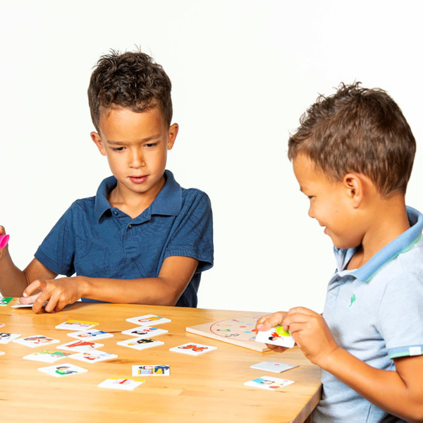 羅盤指針黏一黏 : 旋轉轉盤,快速地用吸盤吸住有關聯性的圖卡,整合語言表達、邏輯思考、視覺搜尋、手眼協調及競賽互動等多種能力;好玩刺激,又能自由創造規則!