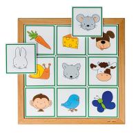 •9張動物圖卡與9張食物圖卡,於櫸木操作板上進行遊戲,激發孩子好奇心、想像力。