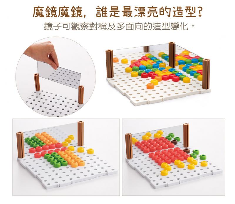 •產品內容|共188件 (底板*2、鏡子*2、鏡柱*4、彩豆*180(6色各30個))