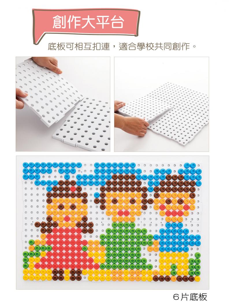 •底板可以互相扣連,創作平台更大,幼兒想像力不受限。
