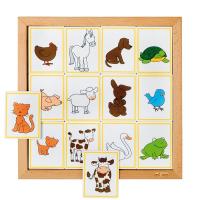 •9張動物圖卡與9張動物寶寶圖卡,於櫸木操作板上進行遊戲,激發孩子好奇心、想像力。