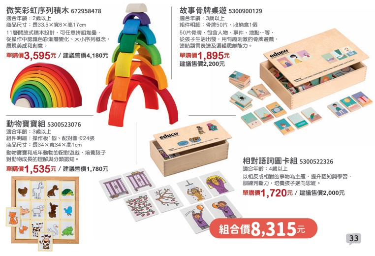 【童心園 春日號 - 數學邏輯區】相對語詞圖卡組 + 動物寶寶組 + 故事骨牌桌遊 + 微笑彩虹序列積木(彩虹積木)