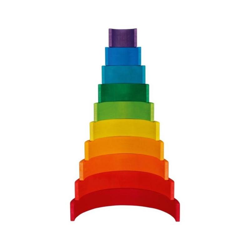微笑彩虹序列積木 : 經典的11層木製彩虹,從操作中認識色彩漸層變化、大小序列概念,展現美感和創意。
