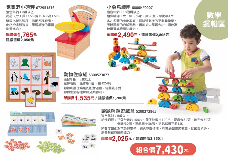 【童心園 春日號 - 數學邏輯區】讀題解題遊戲盒 + 動物住家組 + 家家酒小磅秤 + 小象馬戲團