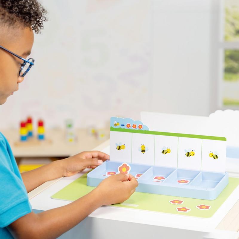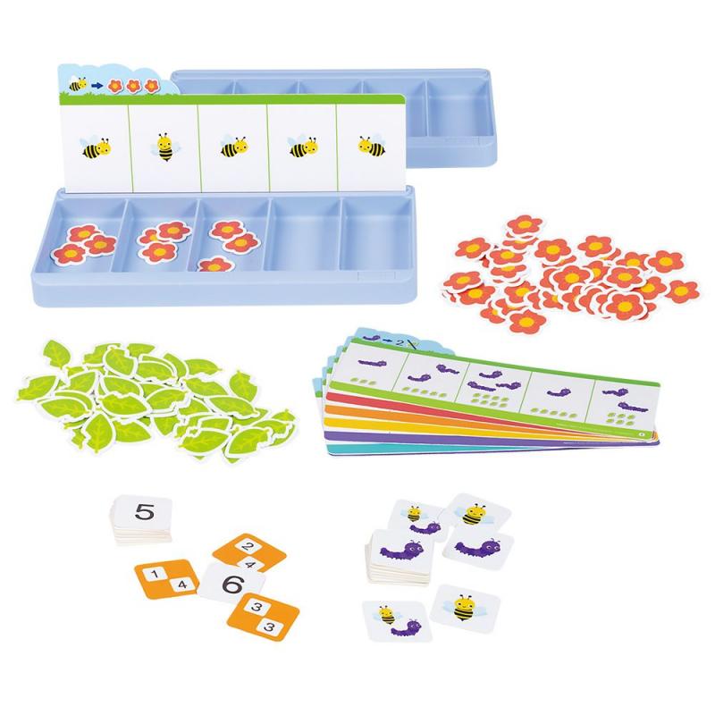 •透過蜜蜂採蜜、毛毛蟲吃樹葉等故事情境,將數字化為直觀可見的花朵和葉子計數片,讓數學變得更生動有趣。