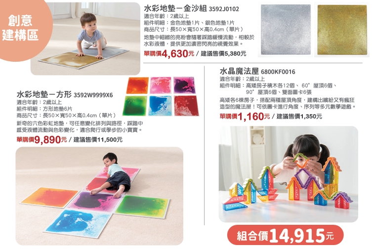 【童心園 春日號 - 創意建構區】水晶魔法屋 + 水彩地墊 金沙組 + 水彩地墊 方形