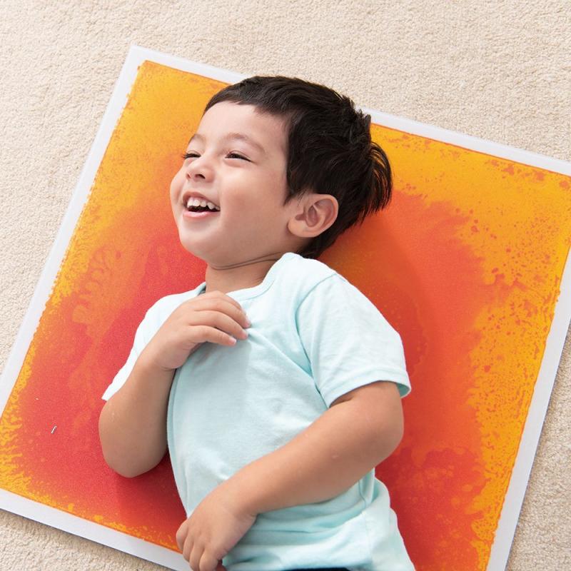 •藝術感十足的設計,當孩子在地墊上爬行、行走或翻滾時,可以觀察到地墊中水彩液體的流動,和顏色的深淺變化,增添源源不絕的遊戲樂趣。