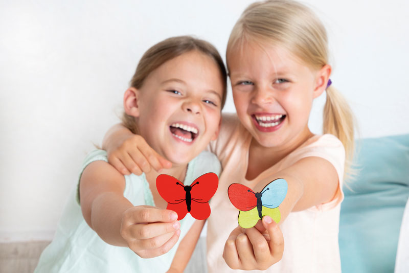 遊戲介紹:根據拋出的3顆骰子顏色,孩子們迅速找到對應的蝴蝶。誰會第一個抓住它呢?